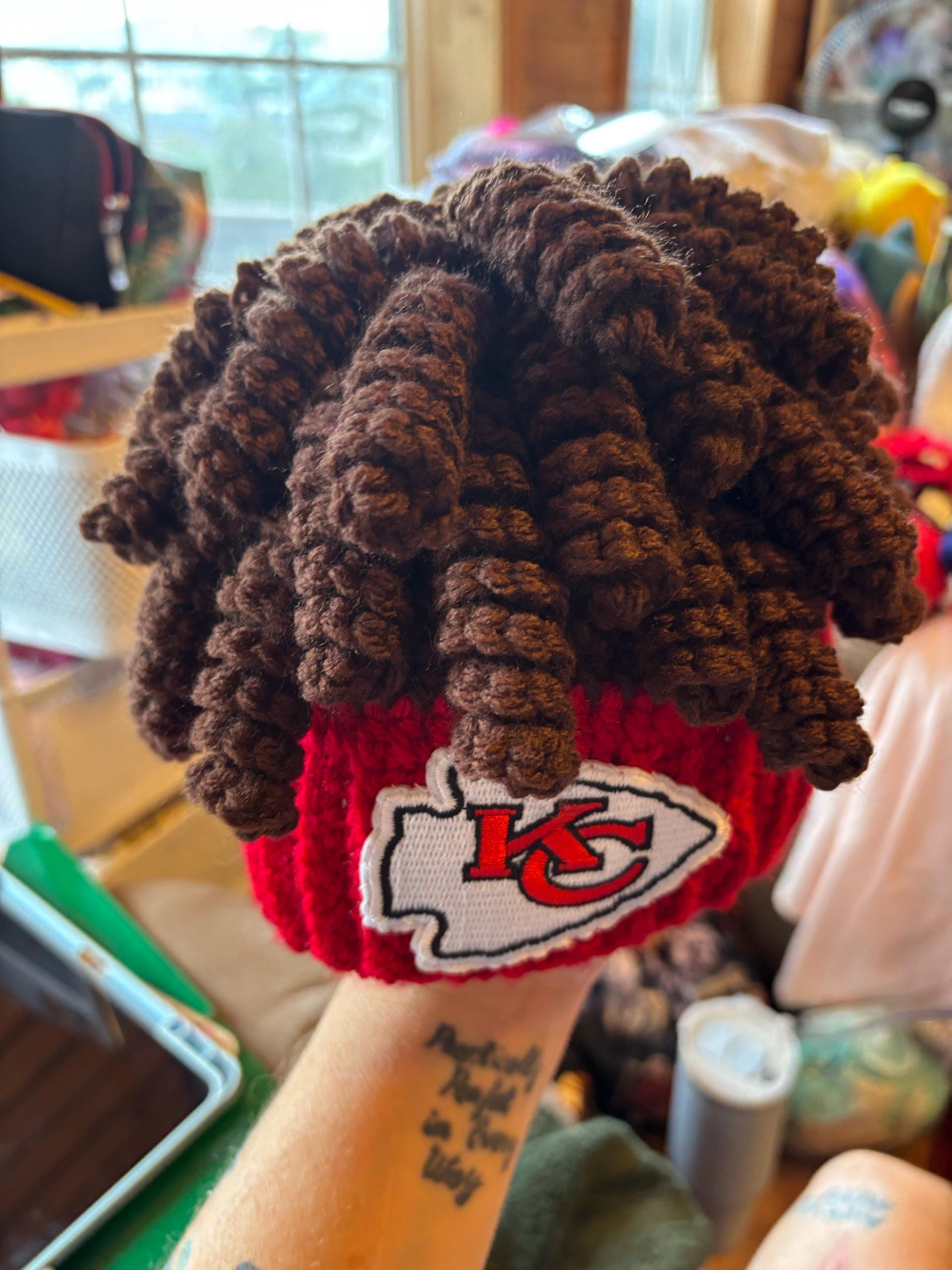 Designed by me, Sheri Shaw of Crochet Au Lait, this is the original pattern... a one-of-a-kind creation that’s been loved by fans for years. The design was inspired by the unmistakable curly hairstyle of a well-known quarterback, transformed into cozy crochet form for spirited, game-day flair.